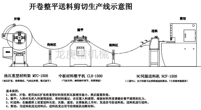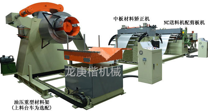 為了從根本上提高剪切加工效率與剪切成品品質,龍庚楷機械專為擁有剪切下料生產需求之客戶設計了一種自動送料機剪切生產線,此生產線通常由油壓重型材料架、中(厚)板整平機、NC伺服送料機、剪板機組成,原材料采用的是外購卷料(占地空間小、存放空間小),由生產線全自動化的實現開卷、整平、送料、剪切工序,剪切成品品質高、生產效率高、穩定性好,同時極大的節省了勞動時間,提高了剪切下料生產效率。自動送料機剪切生產線機臺組成: