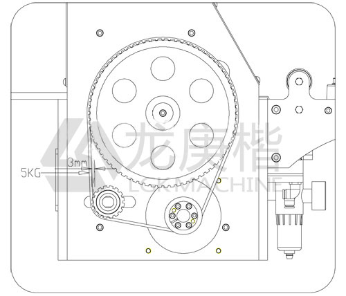 6、皮帶安裝與調整皮帶調整至最適當的彈性。皮帶如果太緊時,會縮短皮帶的壽命:皮帶太松時,則可能導致送料不準或無法送料。